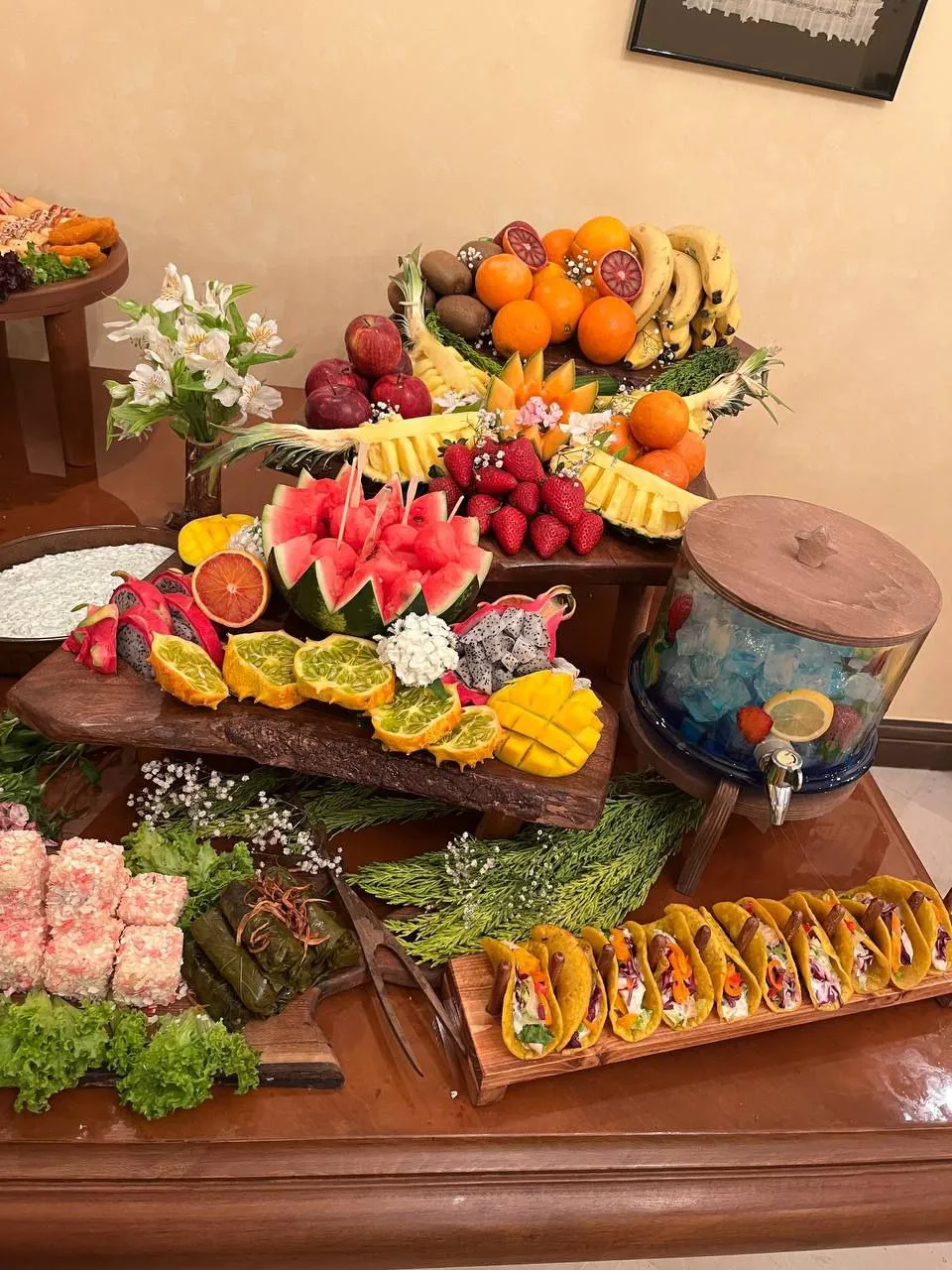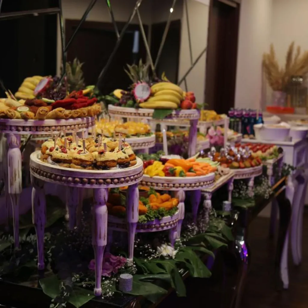 در مراسمهای خاص، ترکیب فینگر فود، مزه، دسر و نوشیدنی در قالب یک میز پذیرایی لاکچری در تهران جلوهای متفاوت ایجاد میکند. این سبک معمولاً با طراحی خاص، نورپردازی، شمع آرایی و گل آرایی مراسم عروسی یا گل آرایی مراسم افتتاحیه اجرا میشود و تصویری چشمگیر در ذهن مهمانان میسازد.